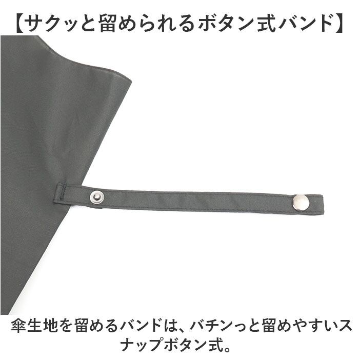 ・傘生地を留めるバンドは、バチンっと留めやすいスナップボタン式。