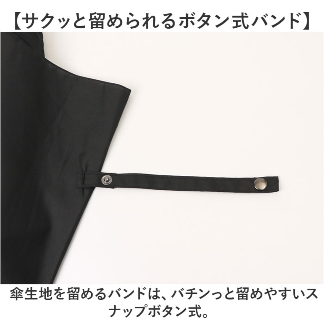 ・傘生地を留めるバンドは、バチンっと留めやすいスナップボタン式。