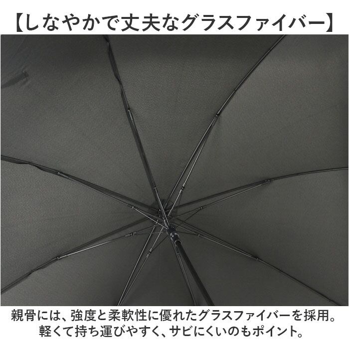 ・親骨には、強度と柔軟性に優れたグラスファイバーを採用。軽くて持ち運びやすく、サビにくいのもポイント。