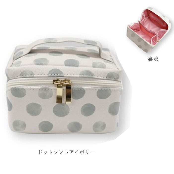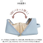 ・ポーチが自立して180度パカっと開く仕様。中身が見えるからメイク用品を探しやすく、出し入れがスムーズに◎メイクボックスのように使える!