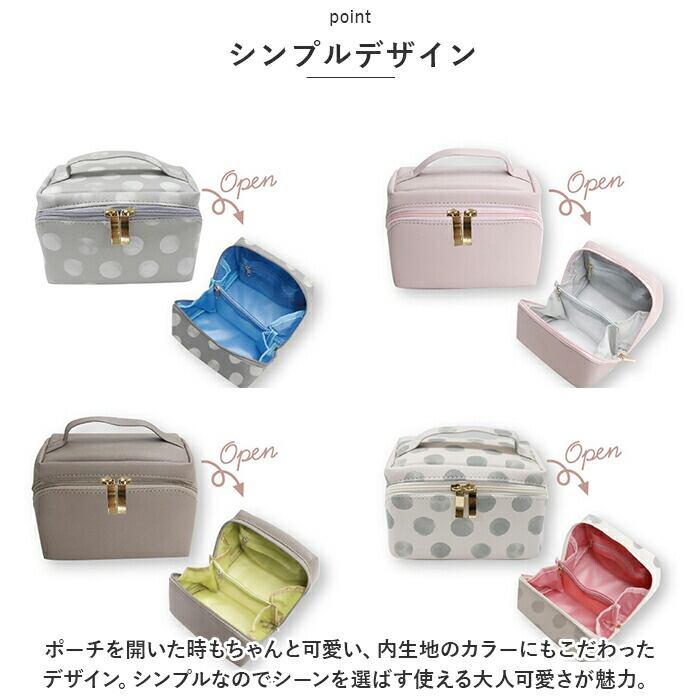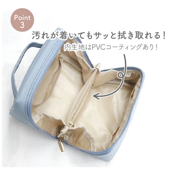 ・ポーチを開いた時もちゃんと可愛い、内生地のカラーにもこだわったデザイン。シンプルなのでシーンを選ばす使える大人可愛さが魅力。