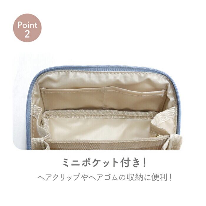 ・便利なミニポケット付き!メイクブラシやヘアクリップなどを立てて置くこともできるオープンポケット仕様。