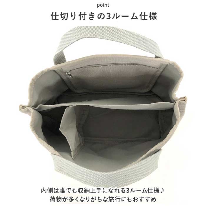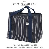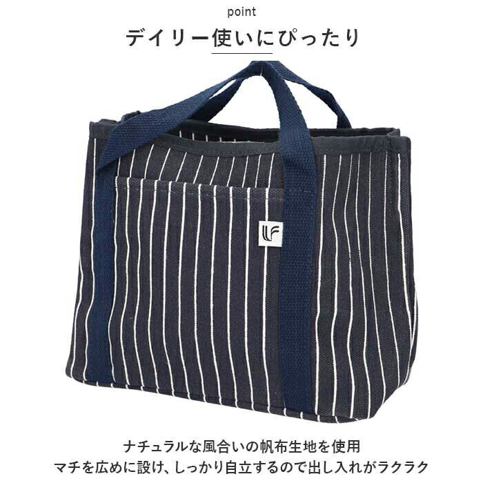 ・ナチュラルな風合いの帆布生地を使用。マチを広めに設け、しっかり自立するので出し入れがラクラク。
