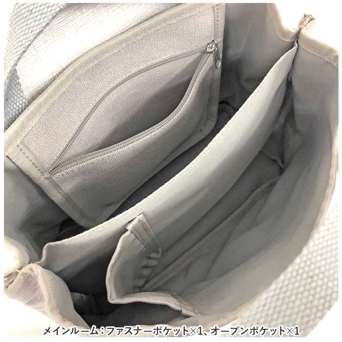 ・メインルーム:ファスナーポケット×1、オープンポケット×1