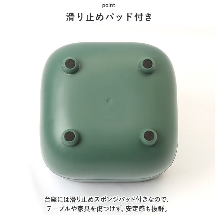 ・台座には滑り止めスポンジパッド付きなので、テーブルや家具を傷つけず、安定感も抜群。