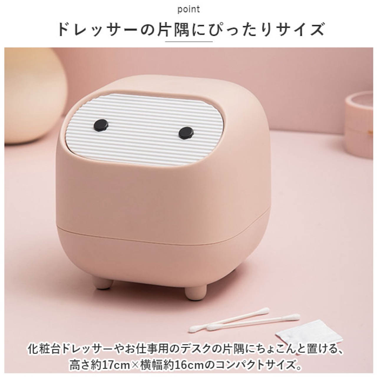 ・ドレッサーではメイク後のコットンをパッと捨てたり、洗面化粧台やレストルームではサニタリーボックスとして大活躍。