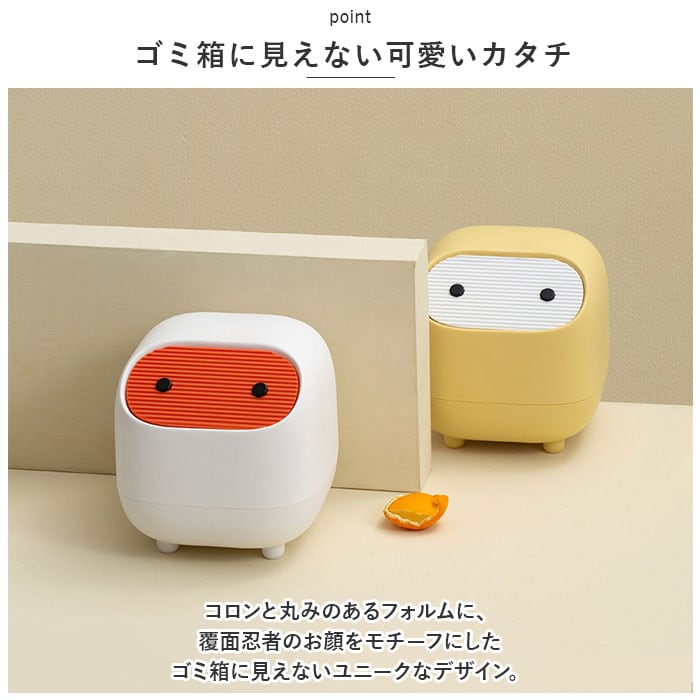 ・コロンと丸みのあるフォルムに、覆面忍者のお顔をモチーフにしたゴミ箱に見えないユニークなデザイン。