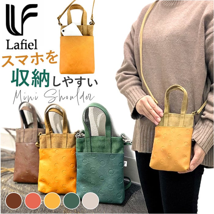 合皮 ミニ ショルダーバッグ 通販 ショルダー ショルダーバック 肩掛け 斜め掛け ななめがけ 帆布 両面 ポケット ドット 収納 小さめ カジュアル 便利 型押し Lafiel おしゃれ