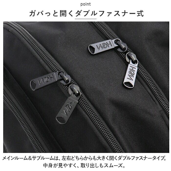 ・メインルーム&サブルームは、左右どちらからも大きく開くダブルファスナータイプ。中身が見やすく、取り出しもスムーズ。