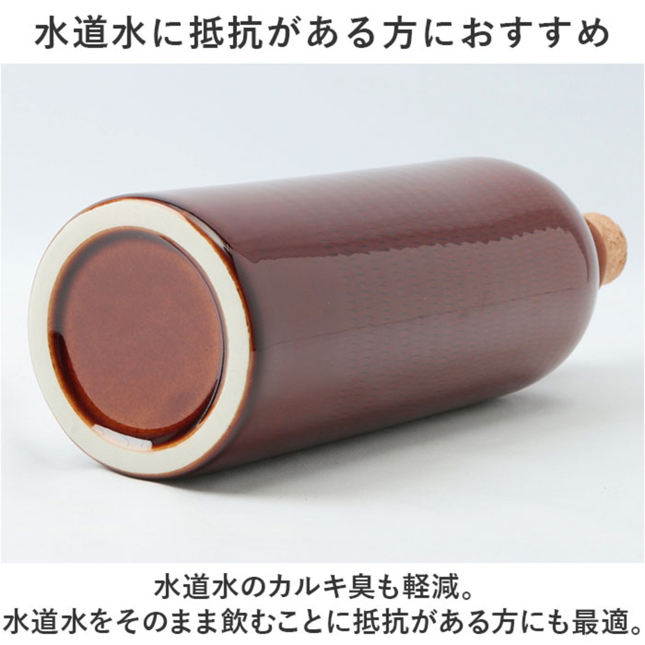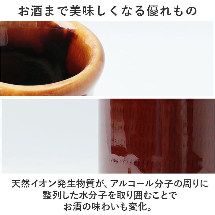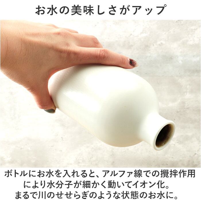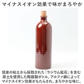 ・信楽の粘土から採取された「ラジウム鉱石」を含む原土を使用した陶器製ボトル。アルファ線によってマイナスイオン効果がもたらされ、まろやかな味に。