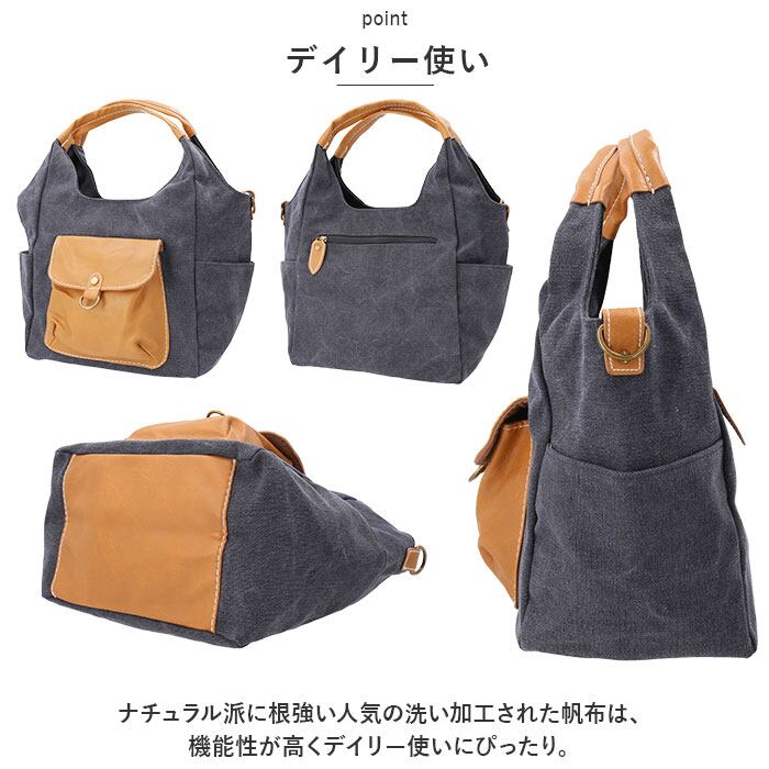・ナチュラル派に根強い人気の洗い加工された帆布は、機能性が高くデイリー使いにぴったり。