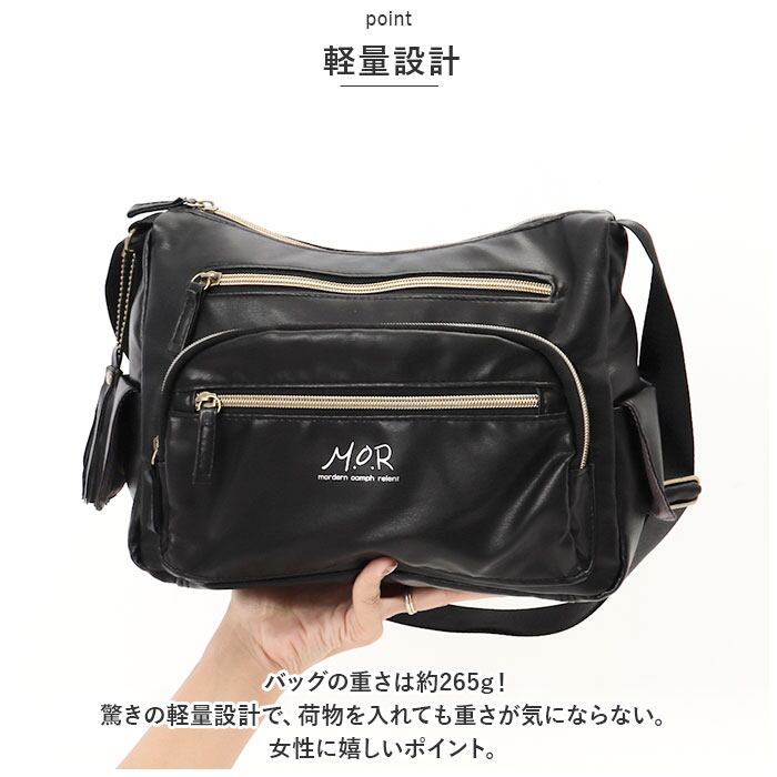 ・バッグの重さは約265g!驚きの軽量設計で、荷物を入れても重さが気にならない。女性に嬉しいポイント。