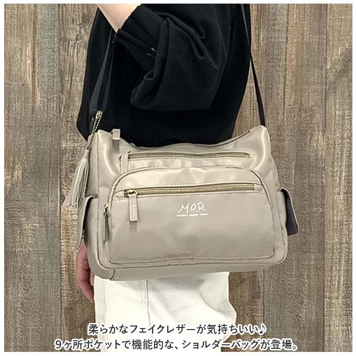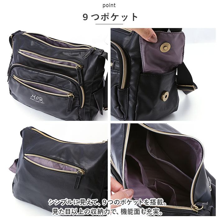 ・柔らかなフェイクレザーが気持ちいい♪9ヶ所ポケットで機能的な、ショルダーバッグが登場。