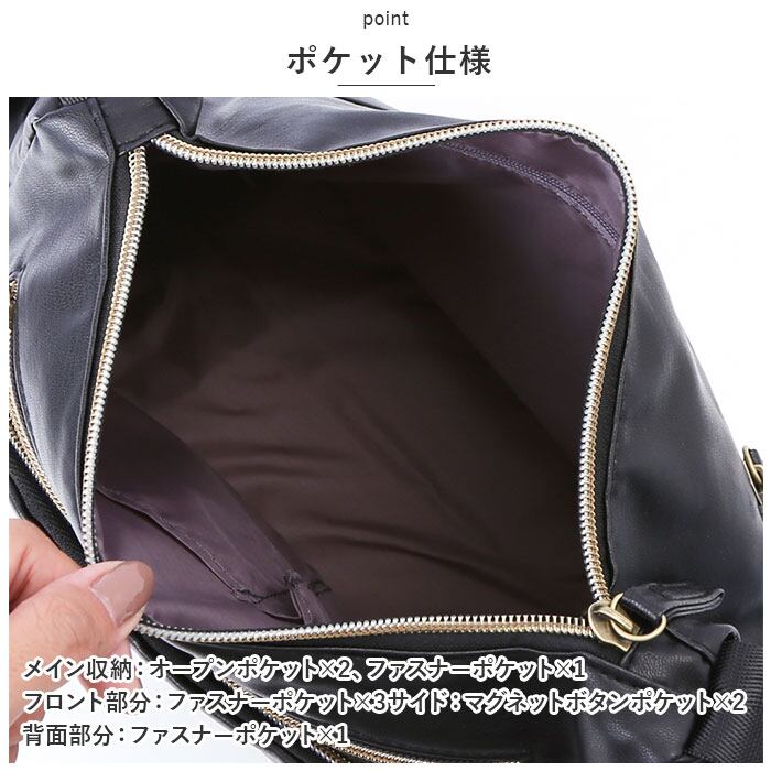 ・メイン収納:オープンポケット×2、ファスナーポケット×1