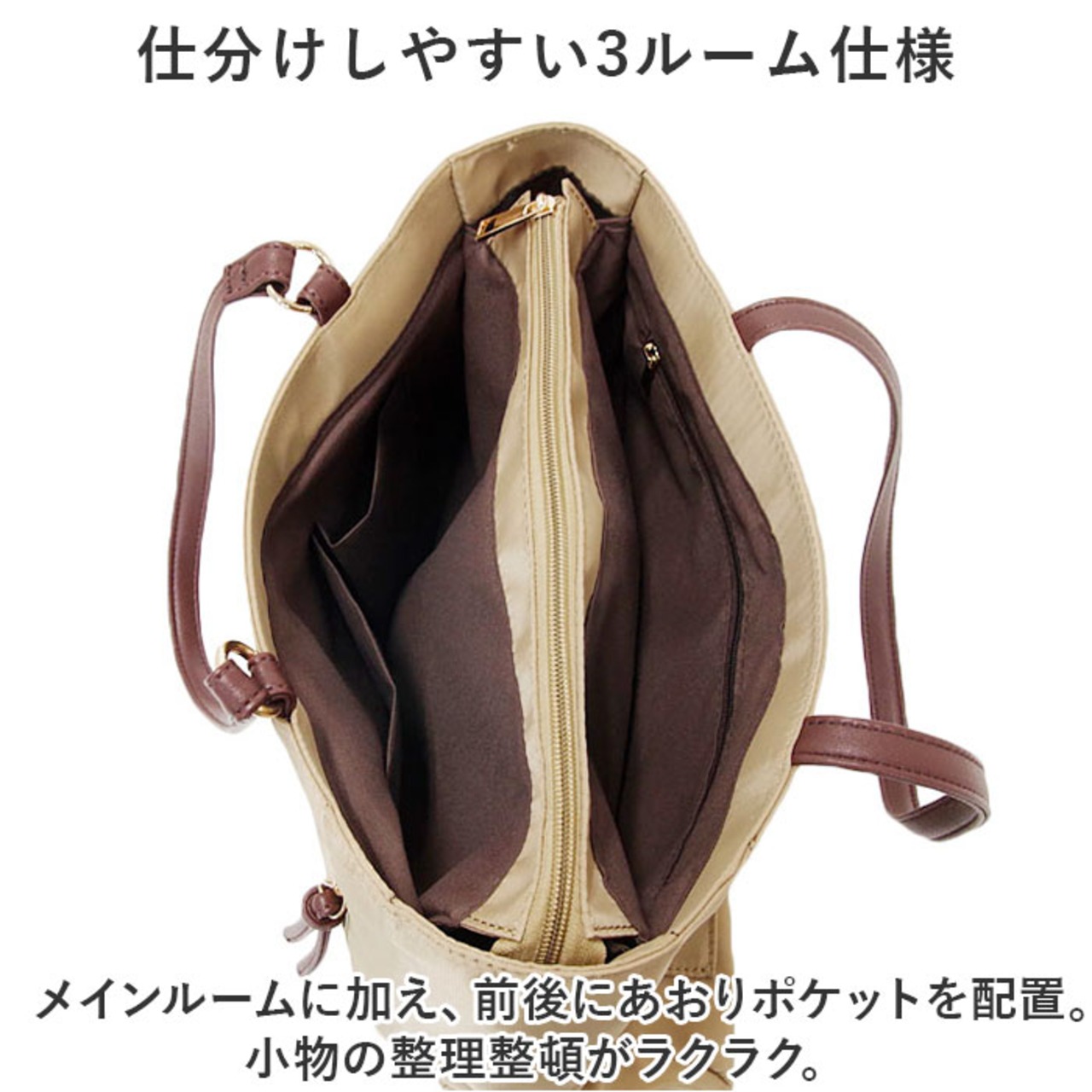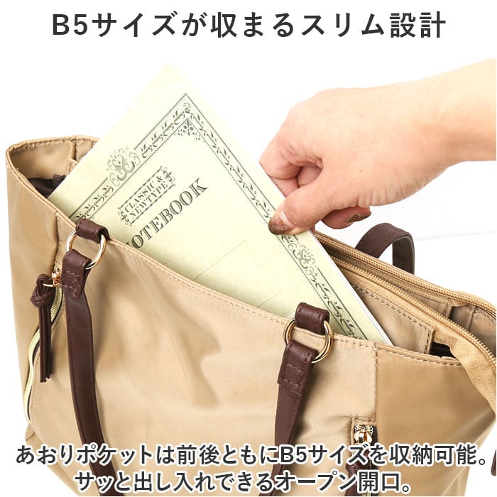 ・あおりポケット内や外側にも、小物ポケットを配置。細々とした物もバッグの中で探す手間が不要。