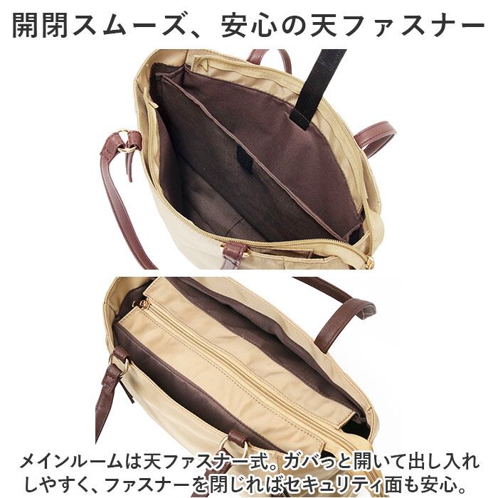 ・メインルームは天ファスナー式。ガバっと開いて出し入れしやすく、ファスナーを閉じればセキュリティ面も安心。