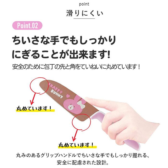 ・安全のために包丁の先と角をていねいに丸めているので、不安感も軽減。