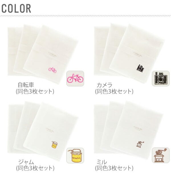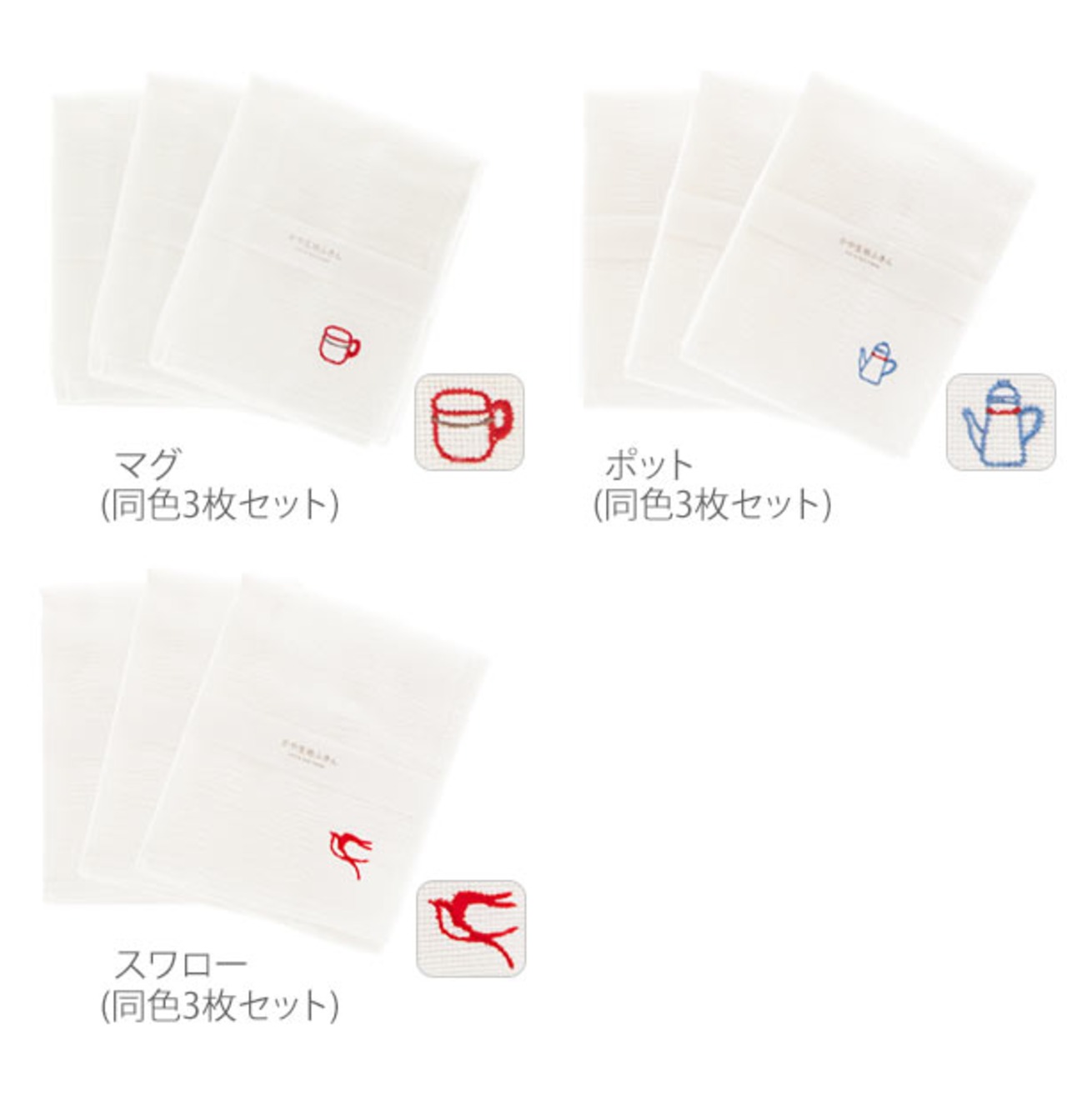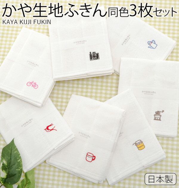 かや生地ふきん 刺繍 日本製 同色×3枚セット