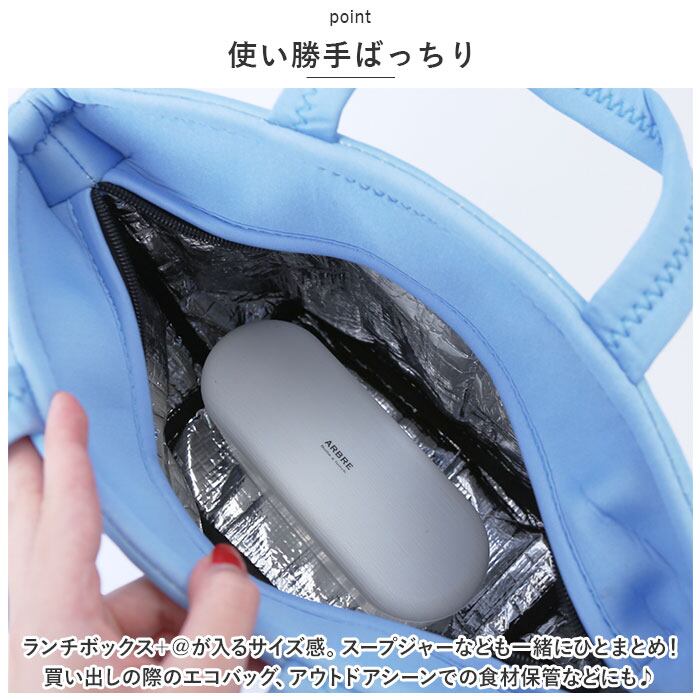 ・ランチボックス+@が入るサイズ感。スープジャーなども一緒にひとまとめ!買い出しの際のエコバッグ、アウトドアシーンでの食材保管などにも♪
