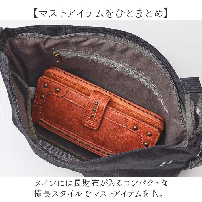 ・メインには長財布が入るコンパクトな横長スタイルでマストアイテムをIN。