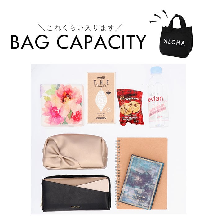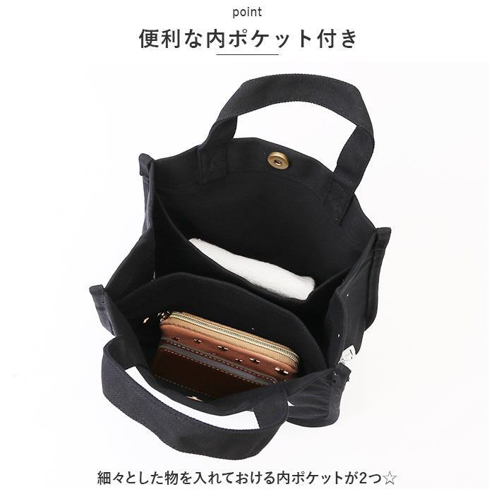 ・B5サイズのノートが横向きに、500mlペットボトルは縦向きにすっぽり。お弁当箱を入れて、ランチバッグとしても活躍。