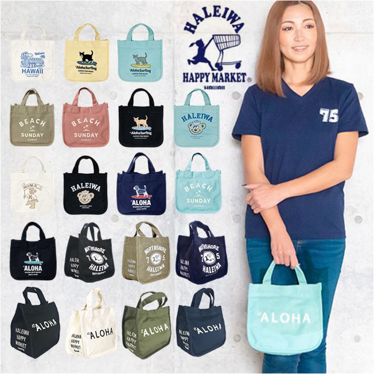 ハレイワ ミニトート 通販 HALEIWA HAPPY MARKET ハレイワハッピーマーケット ランチバッグ ランチバック トートバッグ トートバック ミニトートバッグ ミニバッグ ミニバック レディース ハワイアン雑貨 布 キャンバス おしゃれ かわいい