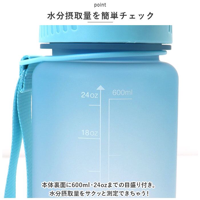 ・本体裏面に600ml・24ozまでの目盛り付き。水分摂取量をサクッと測定できちゃう!