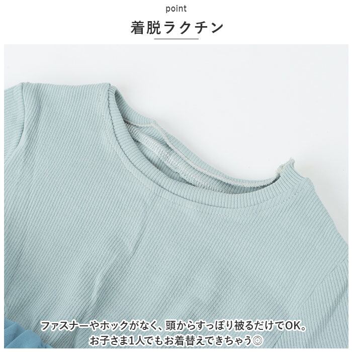 ・ファスナーやホックがなく、頭からすっぽり被るだけでOK。お子さま1人でもお着替えできちゃう◎