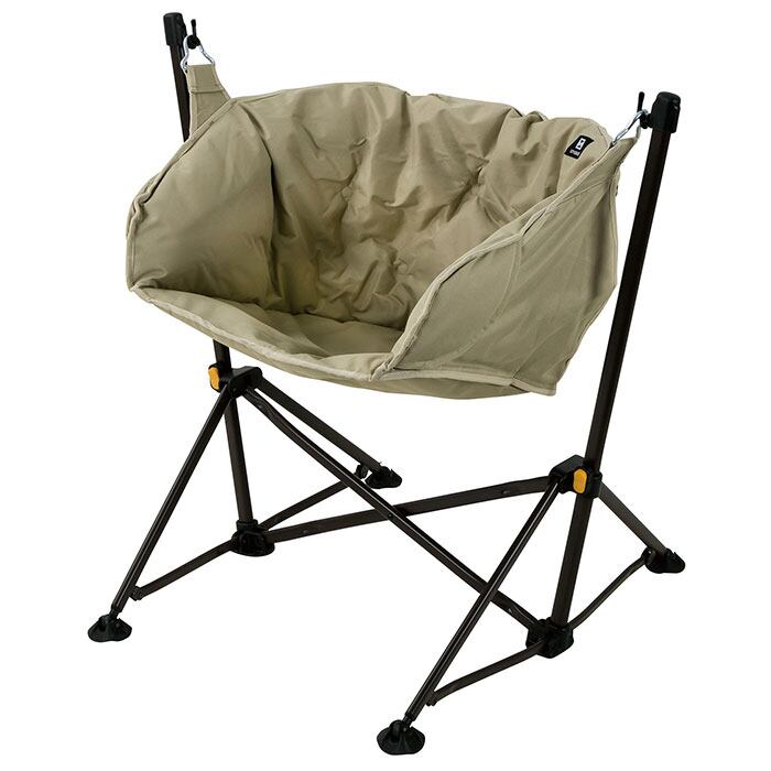 ・フレームを広げて椅子の部分をフレーム部分に引っ掛けるだけ♪工具不要で一般的なアウトドアチェア同様、使い勝手抜群!自立式なので様々な場所に設置OK。