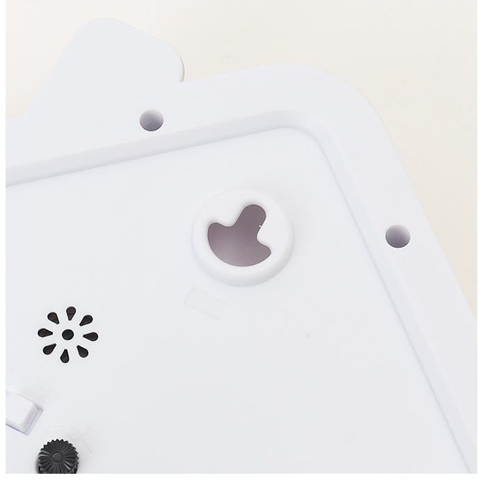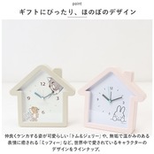・真っ白な文字盤の片隅から可愛らしいキャラクターがぴょこんと顔を覗かせる、ユニークなおうちのカタチをしたアラーム付きクロック。