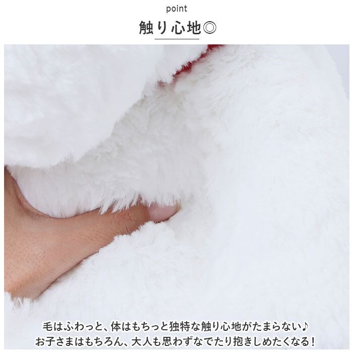 ・毛はふわっと、体はもちっと独特な触り心地がたまらない♪お子さまはもちろん、大人も思わずなでたり抱きしめたくなる!