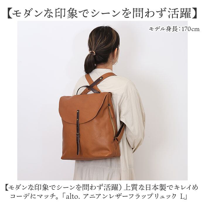 ・上質な日本製でキレイめコーデにマッチ。「alto. アニアンレザーフラップリュック L」