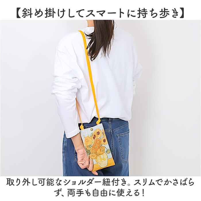 ・ポケットがなくても大丈夫!スマホをサッと取り出せる「名画 スマホショルダーバッグ」。