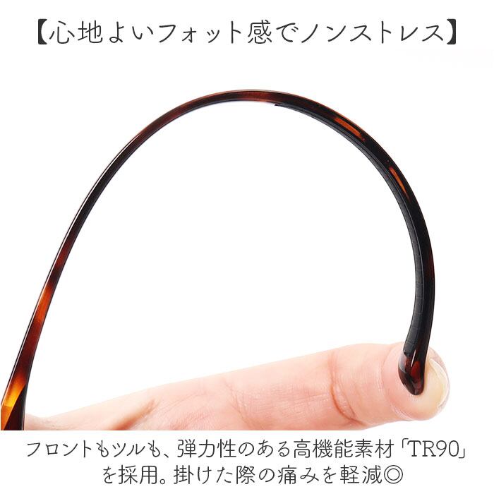 ・フロントもツルも、弾力性のある高機能素材「TR90」を採用。掛けた際の痛みを軽減◎