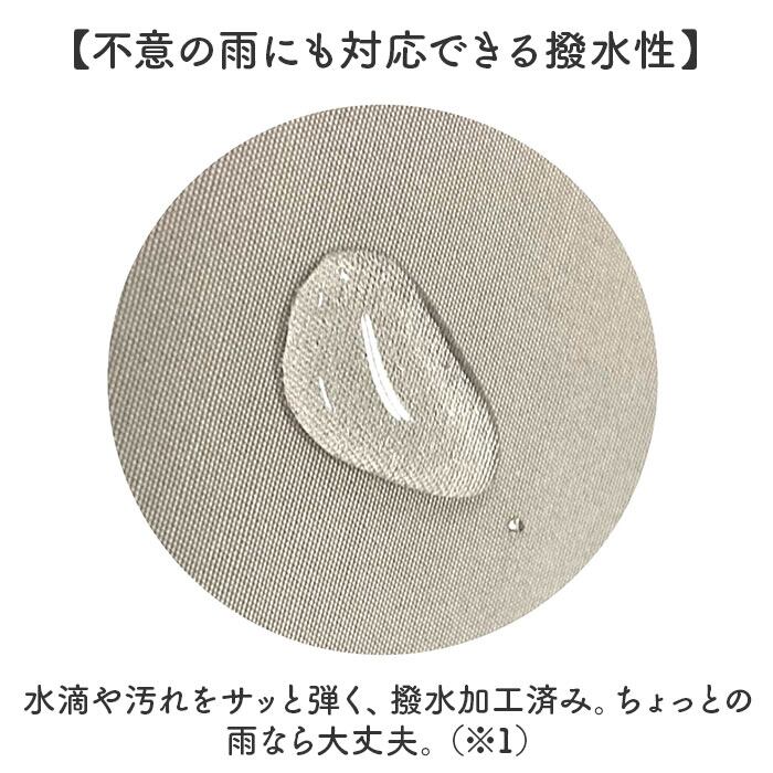 ・水滴や汚れをサッと弾く、撥水加工済み。ちょっとの雨なら大丈夫。