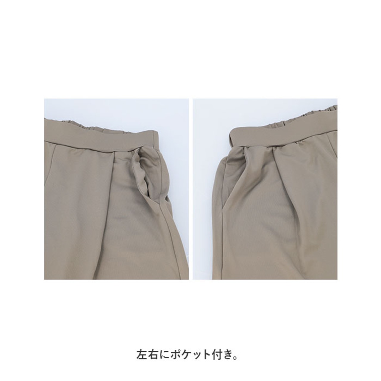 ・締めつけ感のないウエストゴム(バックギャザーゴム)仕様。トップスをインしても、フロントからの見た目がスッキリ◎