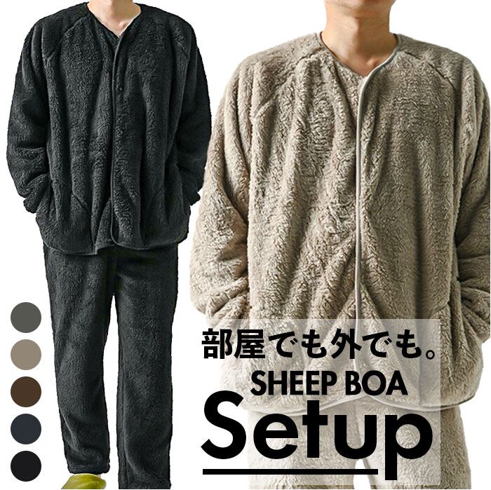 ルームウェア シープボア メンズ 通販 部屋着 ルームウエア パジャマ 寝巻き 寝間着 ボタン ボア生地 もこもこ あたたかい あったか カジュアル シンプル 冬 暖かい ふかふか