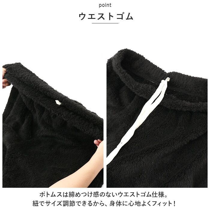 ・ルームウェアとしてはもちろん、締め付け感がない着心地で就寝中の冷え対策、防寒用にもピッタリ。