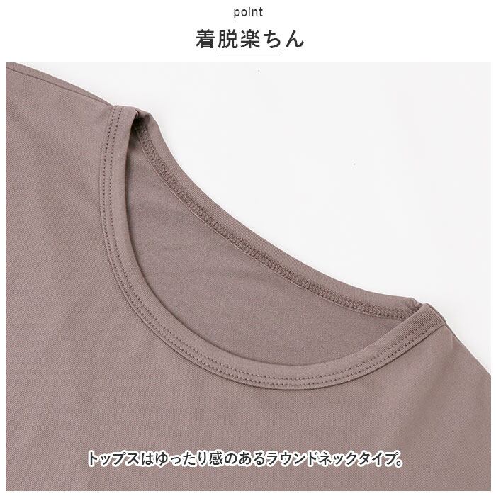 ・トップスはゆったり感のあるラウンドネックタイプ。