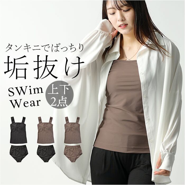 水着 タンキニセット レディース 通販 ビキニ セパレート ツーピース タンキニ水着 スイムウェア 体型カバー フィットネス おしゃれ かわいい 2点セット 上下 ハイウエスト タンクトップ カップ付き シンプル 無地 リゾート 海 プール スポーツ ジム