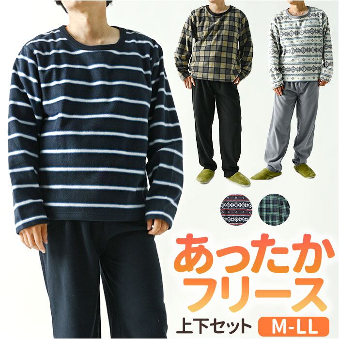 フリース パジャマ 上下 メンズ 通販 部屋着 ルームウェア ルームウエア フリースパジャマ 寝巻き 寝間着 セットアップ 長ズボン ズボン パンツ ラウンドネック 上下セット カジュアル シンプル 無地
