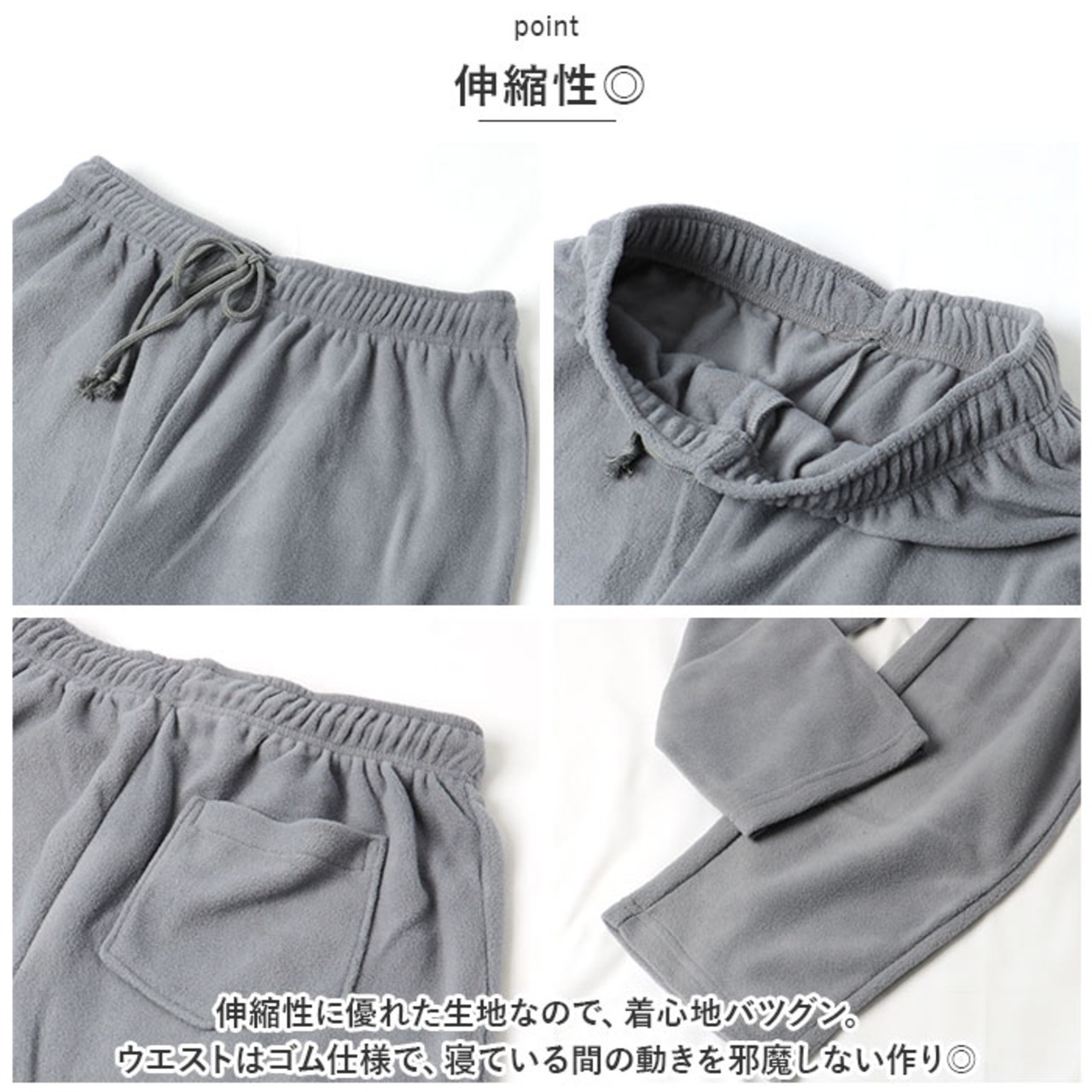 ・フリース素材を使用した、あたたかいルームウエア。寒い季節に優しく身体を包み込むのでリラックスタイムにぴったり。思わず触りたくなる気持ちよさ♪