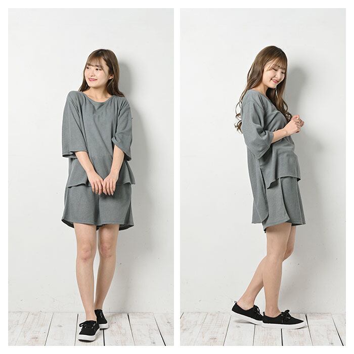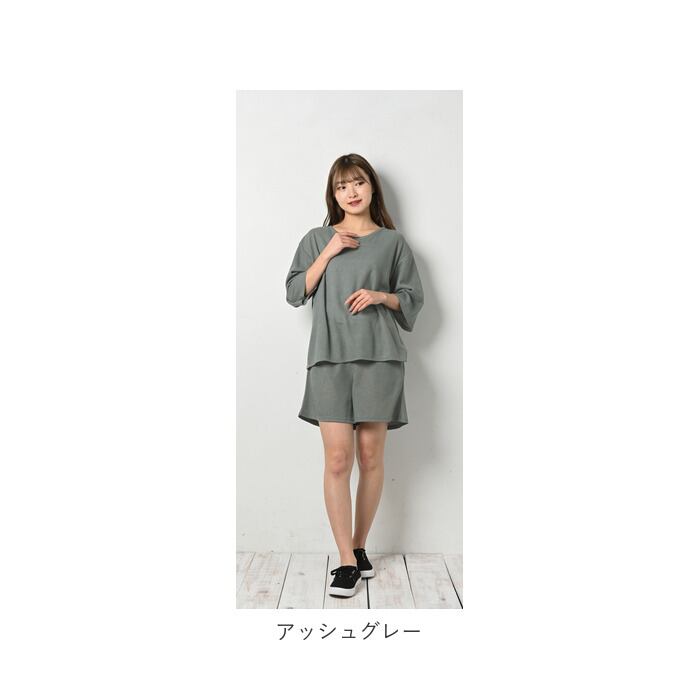 ・サラッと軽い着心地で、お家でのリラックスタイムにぴったり♪五分丈トップスとショートパンツのセットアップが登場。