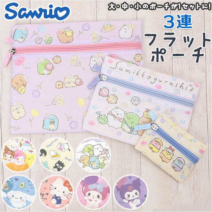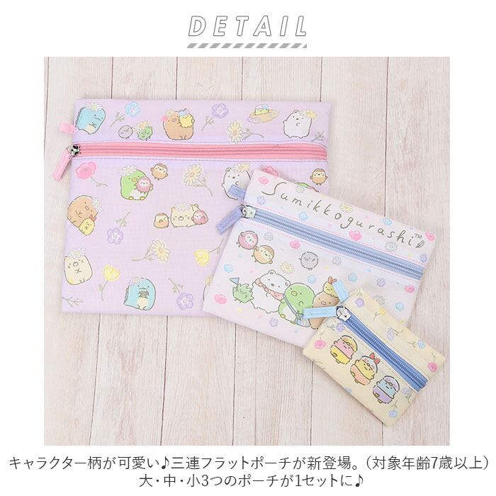 キャラクター フラットポーチ 3つセット すみっコぐらし 通販 キャラクターポーチ キャラ キャラポーチ 女の子 女子 レディース フラット ポーチ ボールチェーン付き 便利 大 中 小 贈り物 ギフト