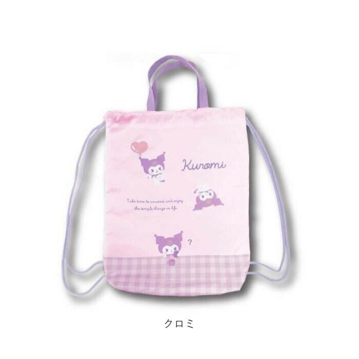 ・人気キャラクターの絵柄が可愛い♪ナップサックタイプの「おきがえバッグ」が新登場。(対象年齢7歳以上)