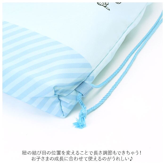 ・紐の結び目の位置を変えることで長さ調節もできちゃう!お子さまの成長に合わせて使えるのがうれしい♪
