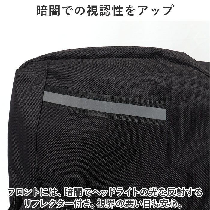 ・フロントには、暗闇でヘッドライトの光を反射するリフレクター付き。視界の悪い日も安心。