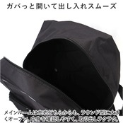・メインルームは左右どちらからも、ラウンド型に大きくオープン。中身を確認しやすく、取り出しラクラク。