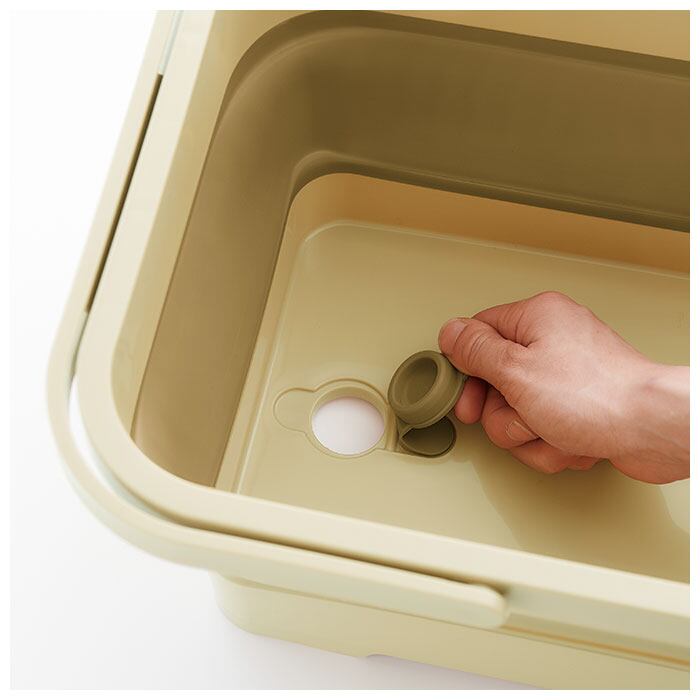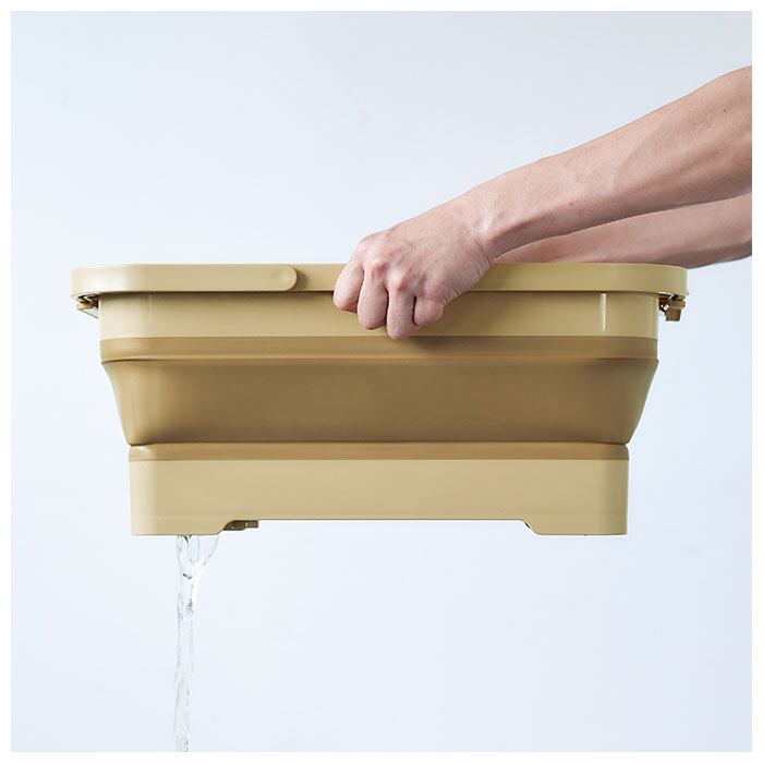 ・バスケットの容量は約15リットル。水栓付きで排水もラクチンだから、水を溜めたり飲み物を冷やしたり、洗い物も可能。