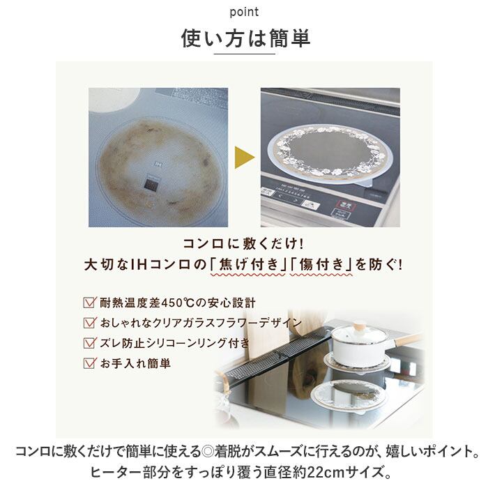 ・ガラス製のマットは、油飛びや煮こぼれなどの汚れもサッと拭き取るだけ。面倒なお手入れ悩みを解決。